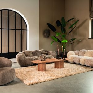Dining chair Safira, beige bouclé with black legs, HN1266 (set of 2)