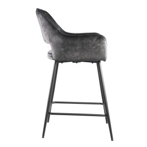 Fallon Velvet Anthracite Bar Stool Black Metal Leg (set of 2)
