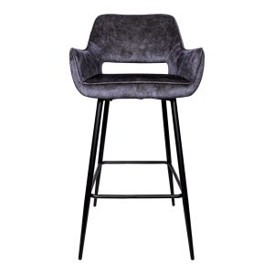 Fal LOW Velvet Anthracite Bar Stool Black Metal Le (set of 2)