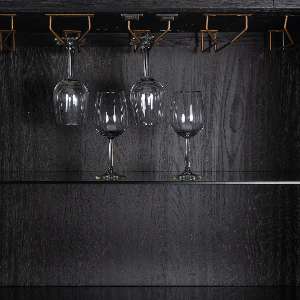 Barkast Bloomville heeft twee deuren, een wijnglazen rek en biedt genoeg opbergruimte om alles bij de hand te hebben voor een gezellige borrelavond! De Bloomville collectie is een verfijnde, luxe collectie gemaakt van segrijn / faux roggehuid van PU leer, zwart eiken en mat gouden details van metaal. Segrijn was populair in de Art Deco periode rond 1920 en geeft je moderne interieur een unieke touch!