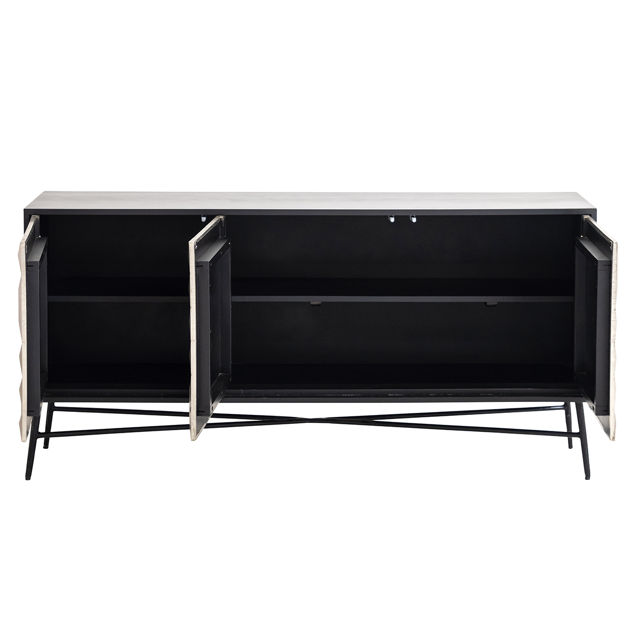 Dressoir Tetro, beschikbaar in goud of zilver, biedt een luxueuze uitstraling met een uniek pyramidemotief, een tijdloze aanvulling voor liefhebbers van onderscheidend interieurdesign.