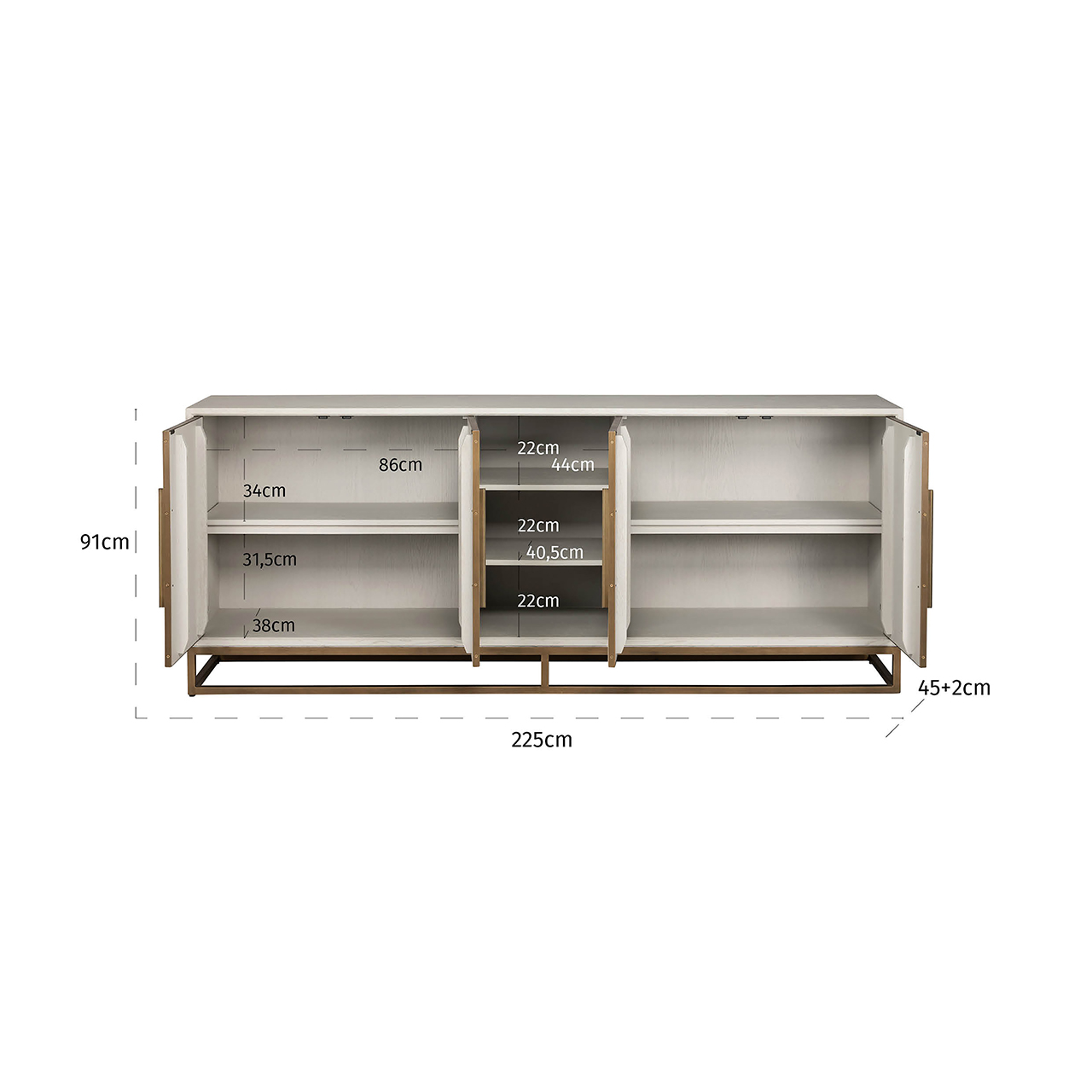 Dressoir Whitebone brass 4-deuren (Verona Grey)