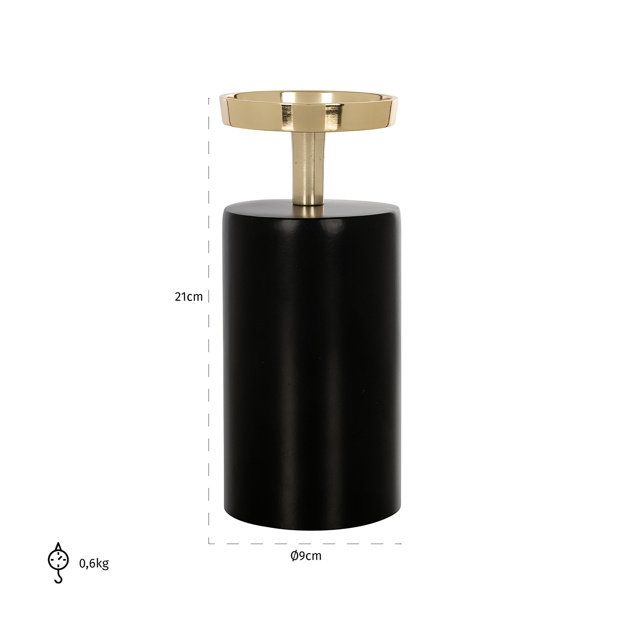 Deze stijlvolle kandelaar is vervaardigd uit hoogwaardig aluminium en afgewerkt in een elegante zwarte tint met verfijnde gouden details. Het tijdloze ontwerp maakt het een perfecte aanvulling voor diverse interieurstijlen. Voor wie op zoek is naar een prominenter formaat, is de Caya kandelaar ook verkrijgbaar in een grotere variant. Ideaal voor zowel alledaags gebruik als speciale gelegenheden.