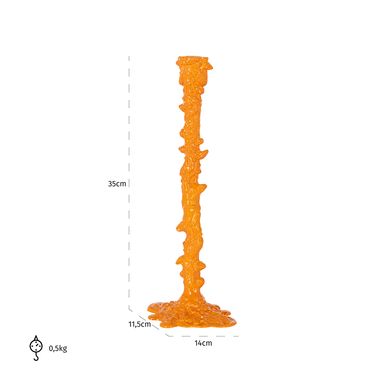 De Cyan kandelaar, afgewerkt in een opvallende oranje tint, biedt een mix van modern en klassiek design. Beschikbaar in kleine en grote maten, biedt deze kandelaar veelzijdigheid in styling en is een duurzame toevoeging aan elk interieur.