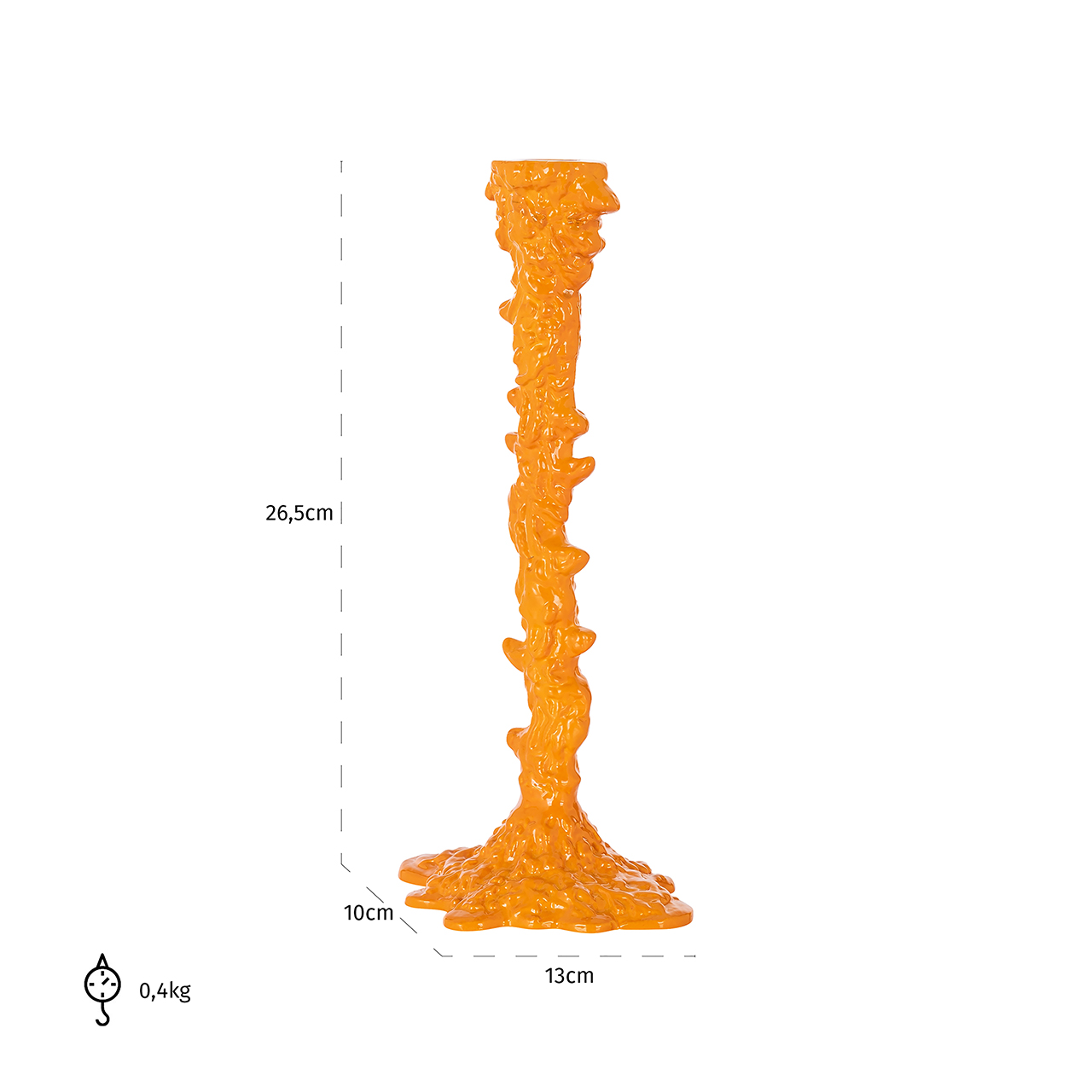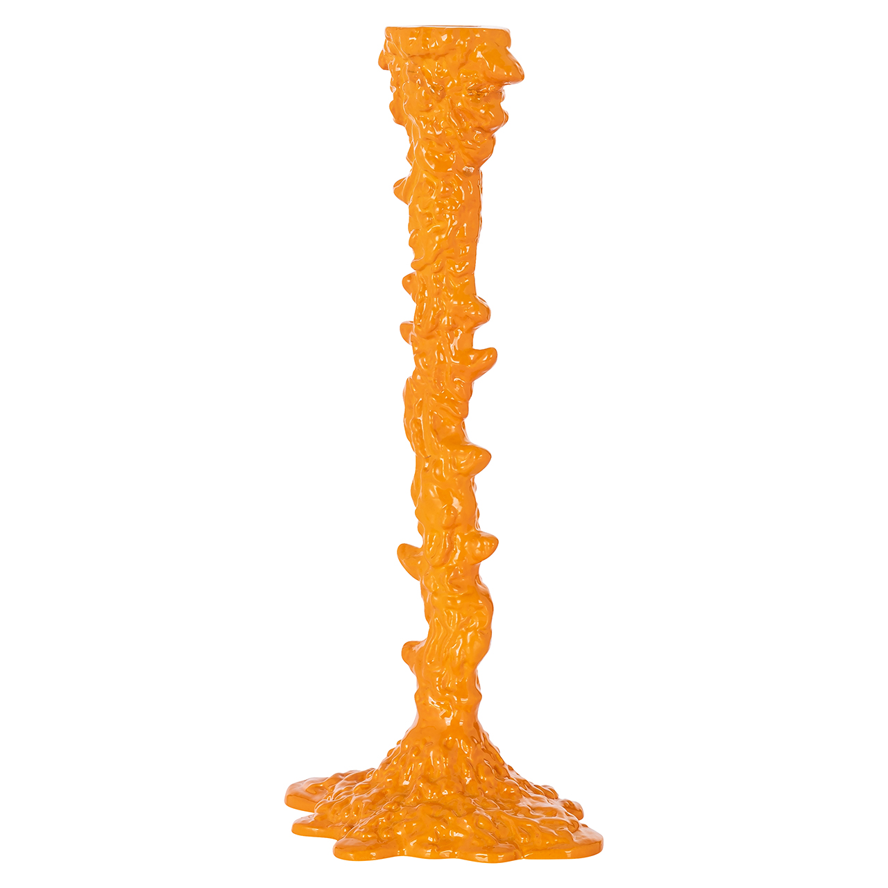 De Cyan kandelaar, afgewerkt in een opvallende oranje tint, biedt een mix van modern en klassiek design. Beschikbaar in kleine en grote maten, biedt deze kandelaar veelzijdigheid in styling en is een duurzame toevoeging aan elk interieur.