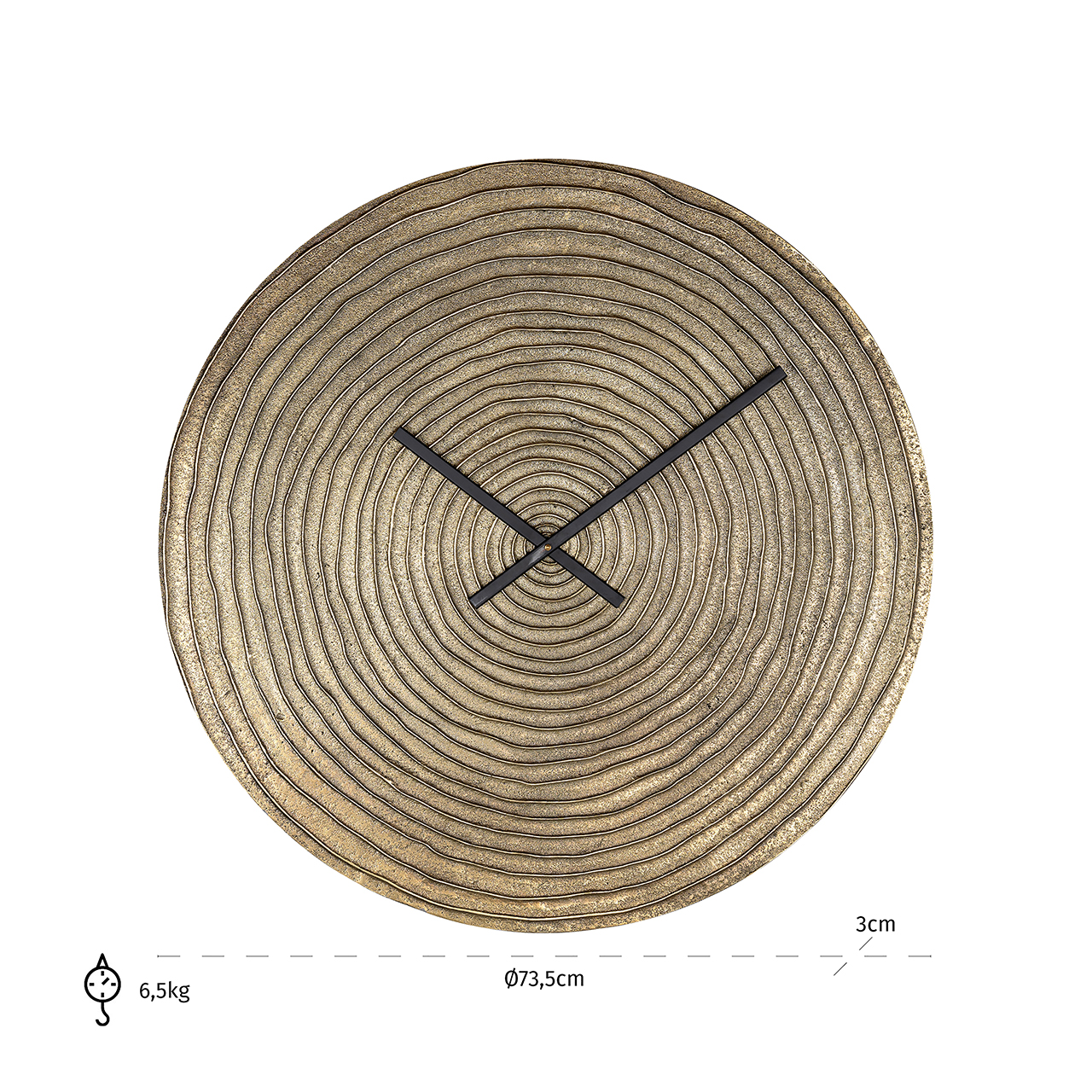 Deze stijlvolle klok, vervaardigd uit goudkleurig aluminium, combineert functionaliteit met elegantie. Het schitterende gouden oppervlak van de Roan klok reflecteert licht op een betoverende manier, waardoor de klok niet alleen een praktische, maar ook een decoratieve functie heeft. De strakke lijnen en het minimalistische ontwerp maken het een tijdloos stuk dat moeiteloos in verschillende interieurstijlen past.