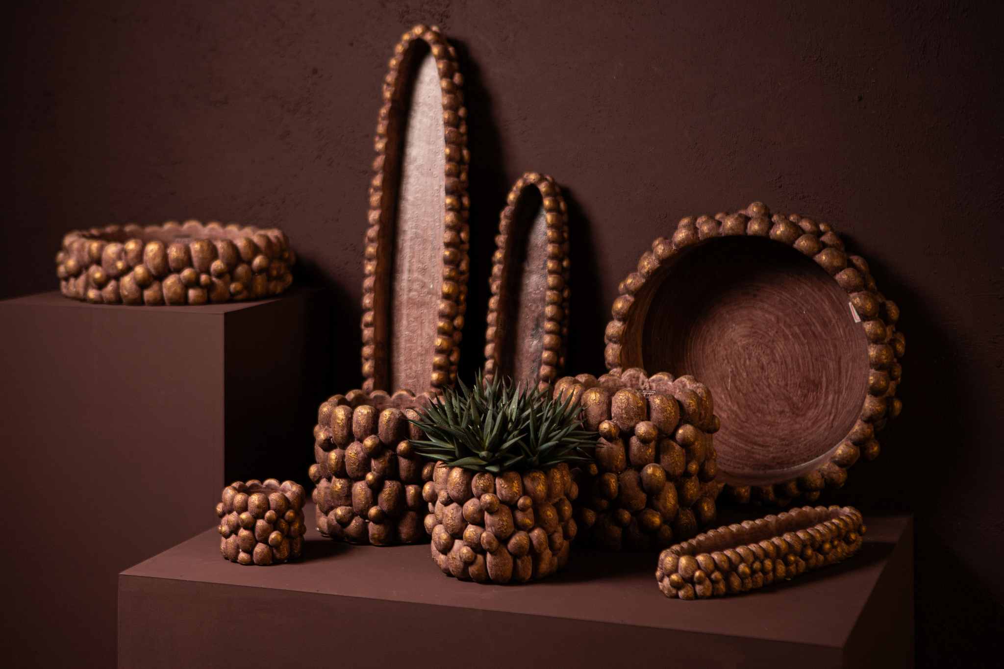 Stenley Bronze cement boat rough rock bowl M