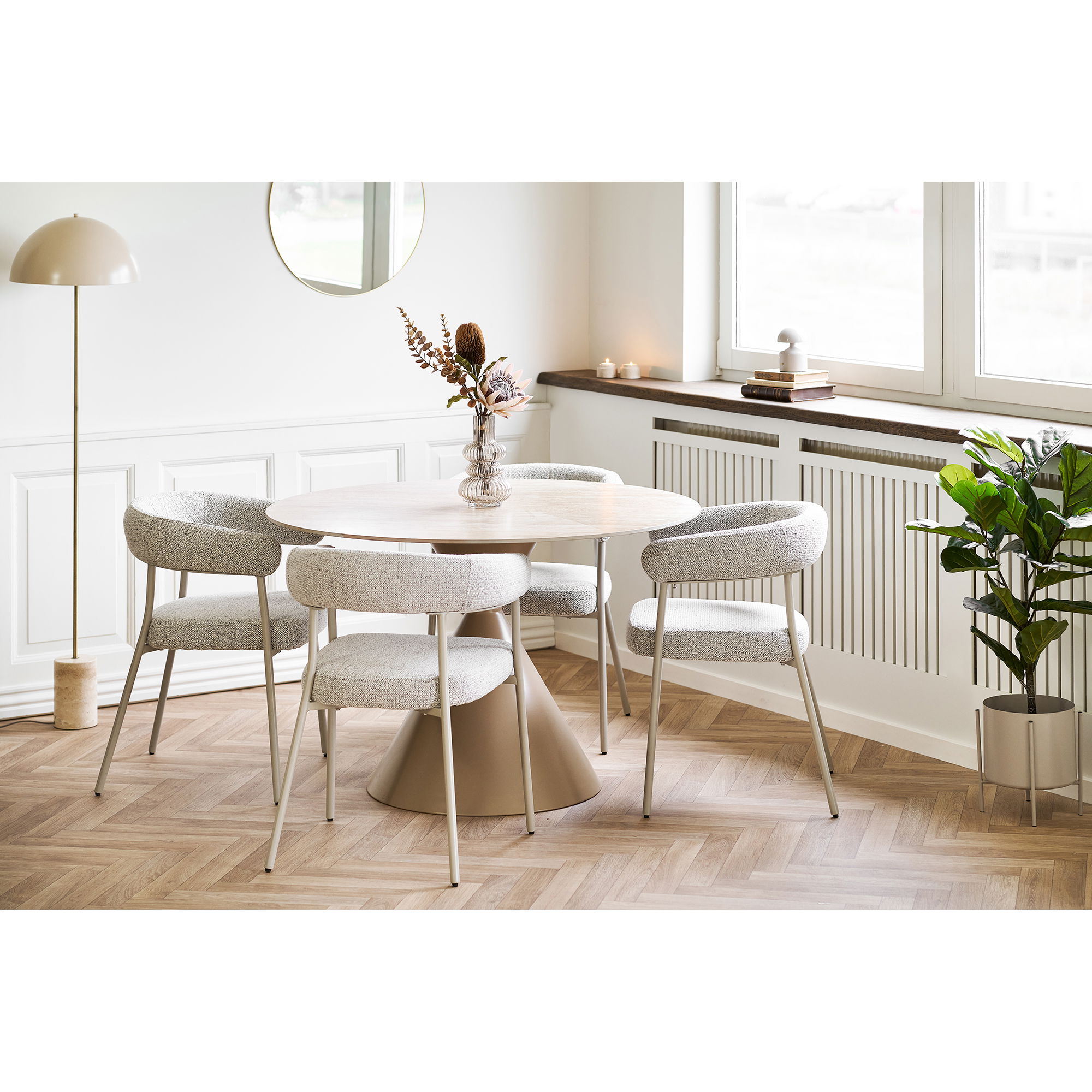 Dining chair, bouclé, sand with grey legs, HN1284