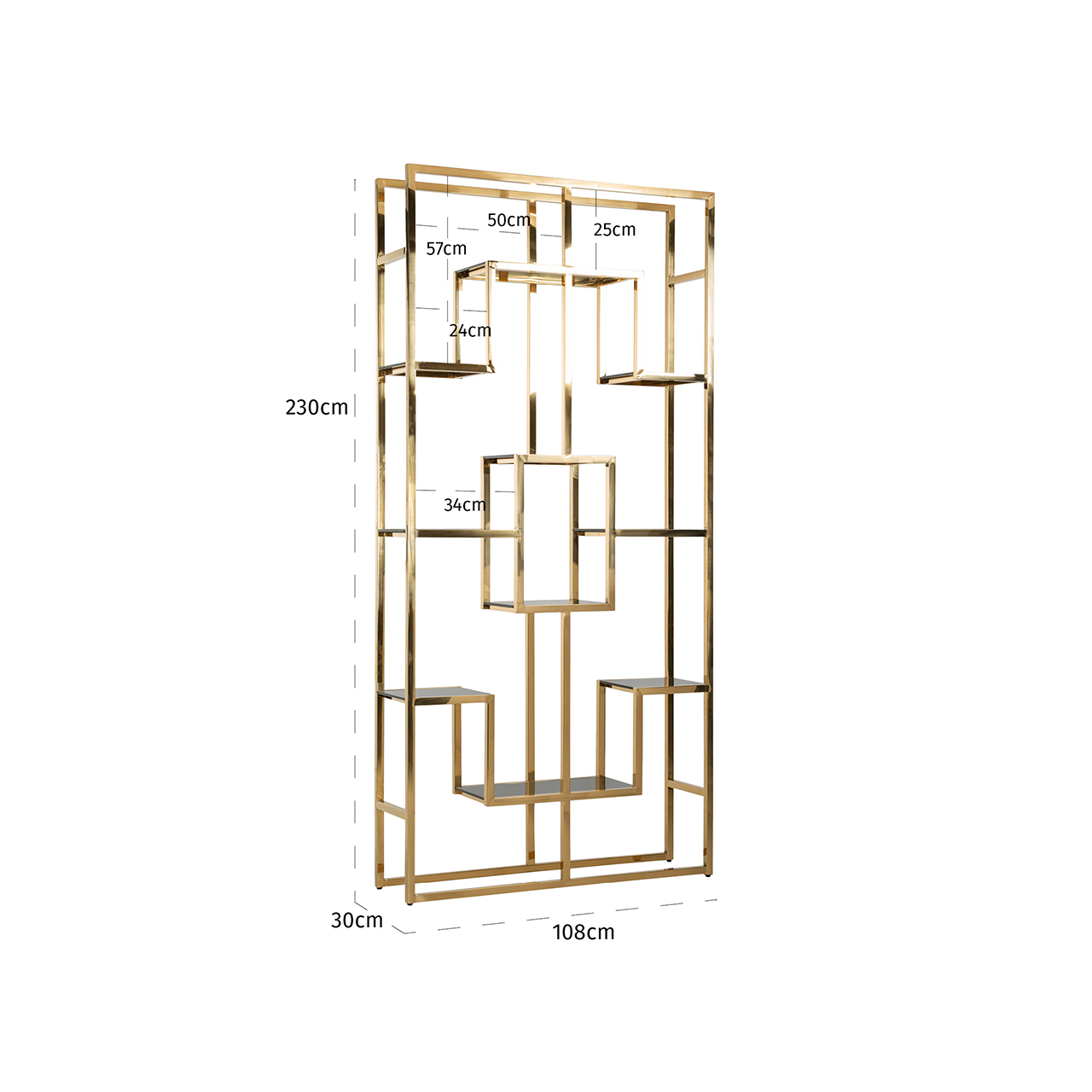 Wandkast Magnus is een eyecatcher in je interieur! Een combinatie van glas en goudkleurig RVS zorgt voor een chique uitstraling. Perfect podium voor je mooiste accessoires!