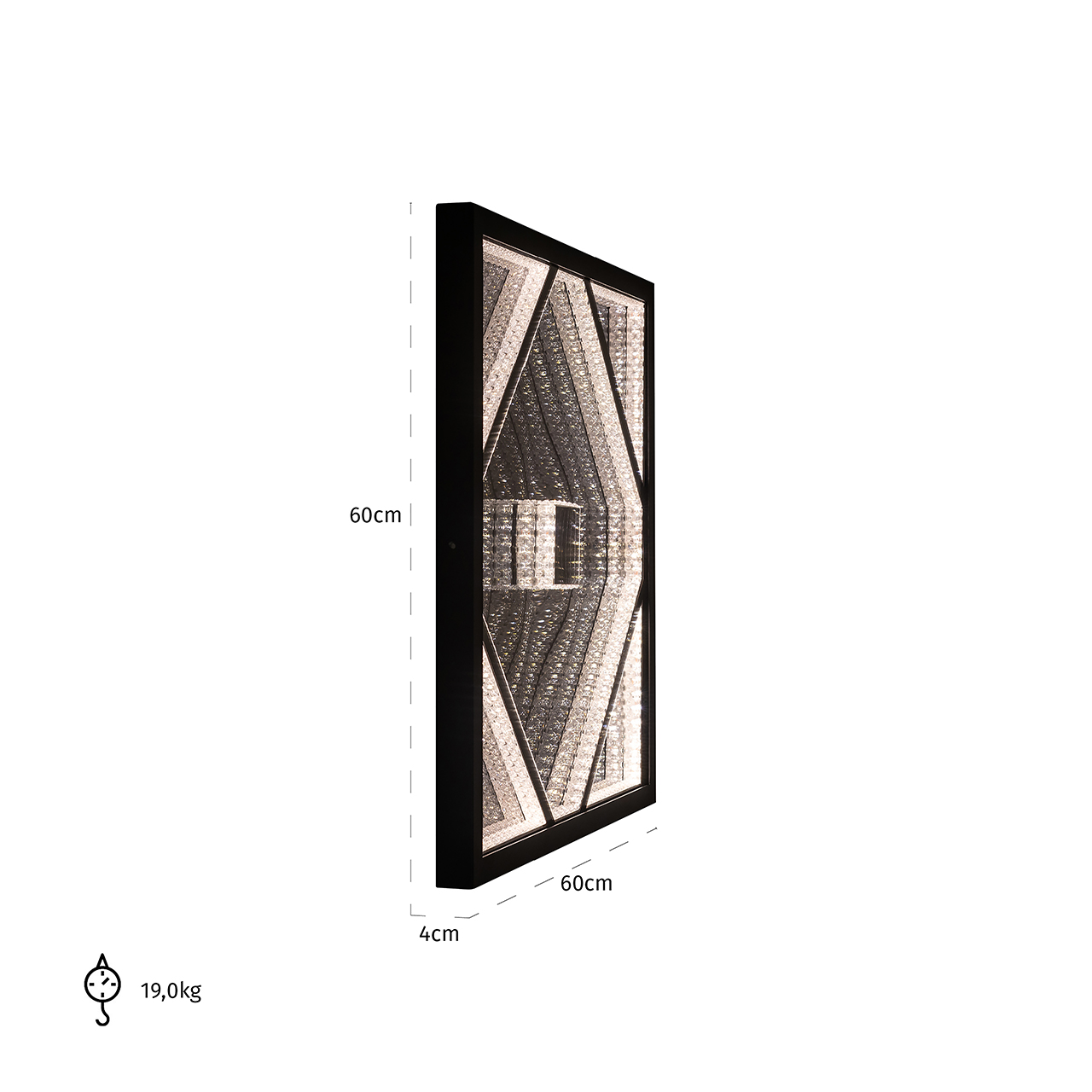 Onze Fayen wandlamp is de perfecte decoratieve accessoire voor een vleugje verfijning en originaliteit in huis. De structuur van ijzer in combinatie met de glazen en kristallen decoratie, zorgt voor een unieke touch met een avant-garde uitstraling die niet onopgemerkt blijft. Het is perfect om als woonkamerlamp te plaatsen of om de verlichting van de gang te versterken en een chique en gastvrije omgeving te creëren. Let op: 36 watt en dimbare lamp vereist.